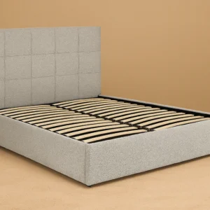 Η στιβαρή κατασκευή του βασίζεται σε έναν ανθεκτικό ξύλινο σκελετό, με ενισχυμένο μεταλλικό σωμιέ που περιλαμβάνει δύο επιπλέον πόδια στήριξης στο κέντρο για μεγαλύτερη σταθερότητα και στήριξη. Το αφαιρούμενο ύφασμα περιμετρικά προσφέρει ευκολία στον καθαρισμό και τη συντήρηση, διασφαλίζοντας ότι το κρεβάτι θα διατηρεί την κομψότητά του στον χρόνο.