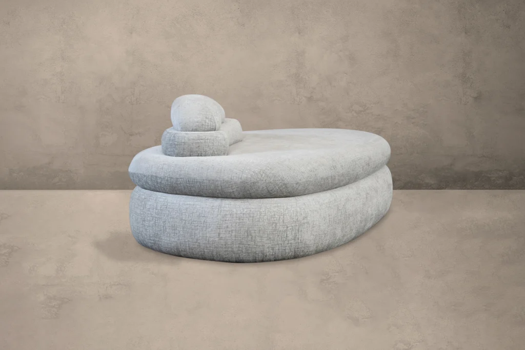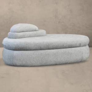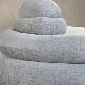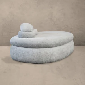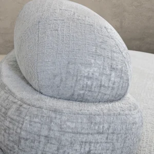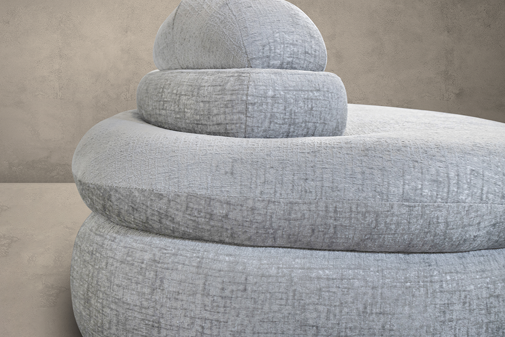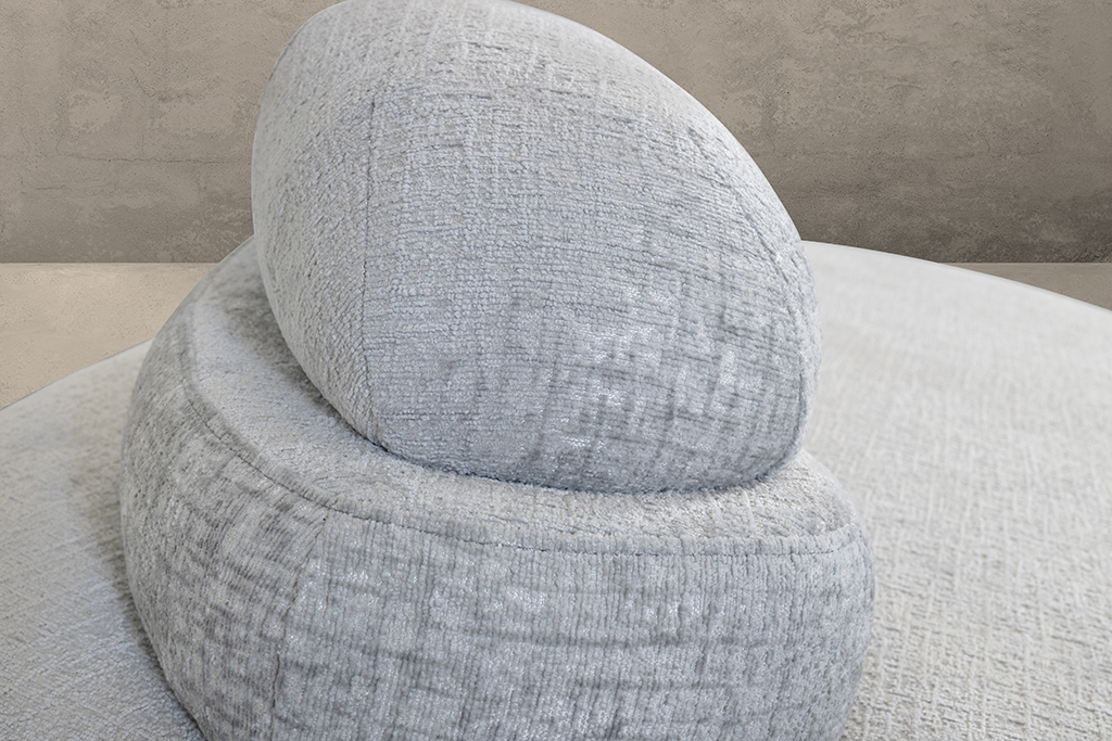 Η επένδυση από απαλό ύφασμα σε ψυχρή, ανοιχτόχρωμη απόχρωση προσφέρει διακριτική κομψότητα, ενώ τα αφαιρετικά μαξιλάρια πλάτης ενισχύουν την άνεση χωρίς να βαραίνουν τον σχεδιασμό. Ο Lomelina λειτουργεί ταυτόχρονα ως σημείο ξεκούρασης και εντυπωσιακό διακοσμητικό στοιχείο, ιδανικός για όσους αναζητούν κάτι το ξεχωριστό στο καθιστικό τους.