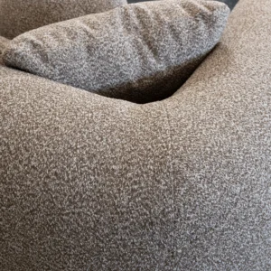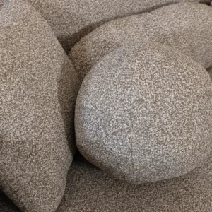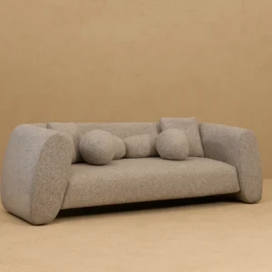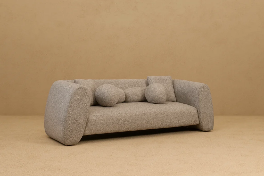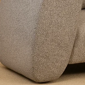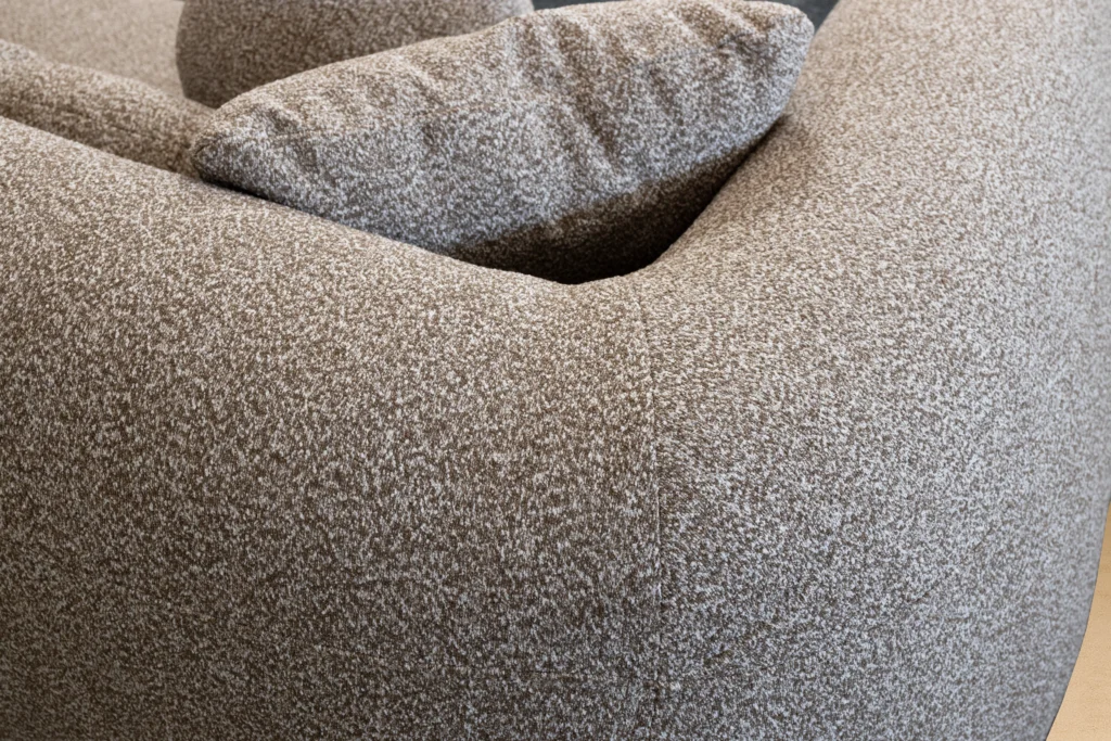 Αυτός ο καναπές έχει μοντέρνο σχεδιασμό με καμπυλωτές γραμμές και μίνιμαλ αισθητική. Είναι επενδυμένος με απαλό, καφέ ύφασμα τύπου boucle, που του δίνει ζεστή και φιλική υφή. Τα μαξιλάρια πλάτης είναι μεγάλα και αφράτα, προσφέροντας άνεση και στήριξη. Τα φαρδιά μπράτσα και η χαμηλή του βάση τον κάνουν να ξεχωρίζει χωρίς υπερβολές. Ιδανικός για μοντέρνα σαλόνια που θέλουν κάτι απλό αλλά ξεχωριστό.