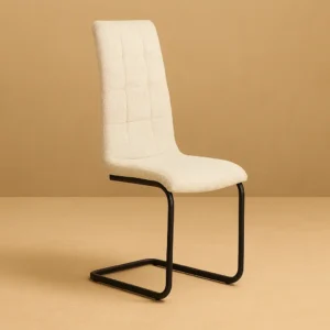 Το κάθισμα Getty white έχει ψηλή πλάτη και επένδυση από βελούδινο ύφασμα σε λευκή απόχρωση. Διαθέτει μεταλλική μαύρη βάση και καπιτονέ διαχρονική τεχνοτροπία. Πρόκειται για μια κομψή επιλογή, ιδανική για κάθε χώρο.