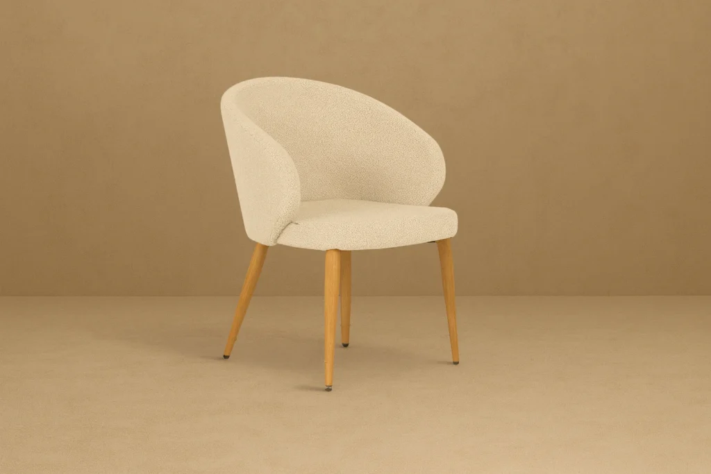 Το κάθισμα Κalliroi με σταχτί πόδι είναι επενδυμένο με ανθεκτικό μπουκλέ ύφασμα προσφέροντας μαλακή και ζεστή υφή. Κατασκευασμένο από υψηλής ποιότητας υλικά προσφέρει αντοχή στον χρόνο. Με την εντυπωσιακή σχεδίαση της πλάτης παρέχει εργονομική άνεση και αγκαλιάζει το σώμα. Ιδανικό για κάθε τραπεζαρία ή για να δημιουργήσετε μια γωνιά ανάγνωσης.