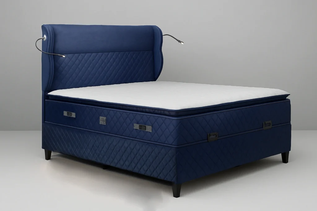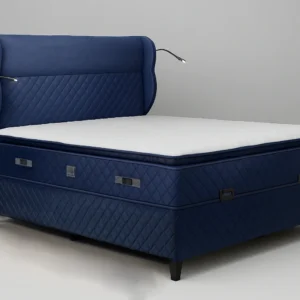Αναβαθμίστε την κρεβατοκάμαρά σας με ένα κρεβάτι που συνδυάζει κομψότητα και πρακτικότητα. Η πολυτελής μπλε επένδυση με καπιτονέ σχέδιο χαρίζει μοντέρνο στυλ, ενώ ο ευρύχωρος αποθηκευτικός χώρος με μηχανισμό ανύψωσης προσφέρει την απόλυτη ευκολία για την οργάνωση του σπιτιού σας. Ένα κρεβάτι που εντυπωσιάζει με την εμφάνιση αλλά και την λειτουργικότητά του – ιδανικό για να απολαμβάνετε άνεση και στυλ κάθε μέρα.
