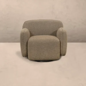 Η πολυθρόνα Chiavello συνδυάζει μοντέρνο σχεδιασμό με πρακτικότητα. Διαθέτει μπουκλέ ύφασμα σε ουδέτερο γήινο τόνο, που της χαρίζει μια ζεστή και οικεία αίσθηση. Οι αφράτες, καμπυλωτές γραμμές της πλάτης και των μπράτσων προσφέρουν άνεση. Το βασικό της χαρακτηριστικό είναι η περιστρεφόμενη βάση, που την καθιστά ιδιαίτερα λειτουργική για καθημερινή χρήση. Είναι ιδανική για σαλόνια ή γωνιές ανάγνωσης που θέλουν να συνδυάσουν στυλ και άνεση.