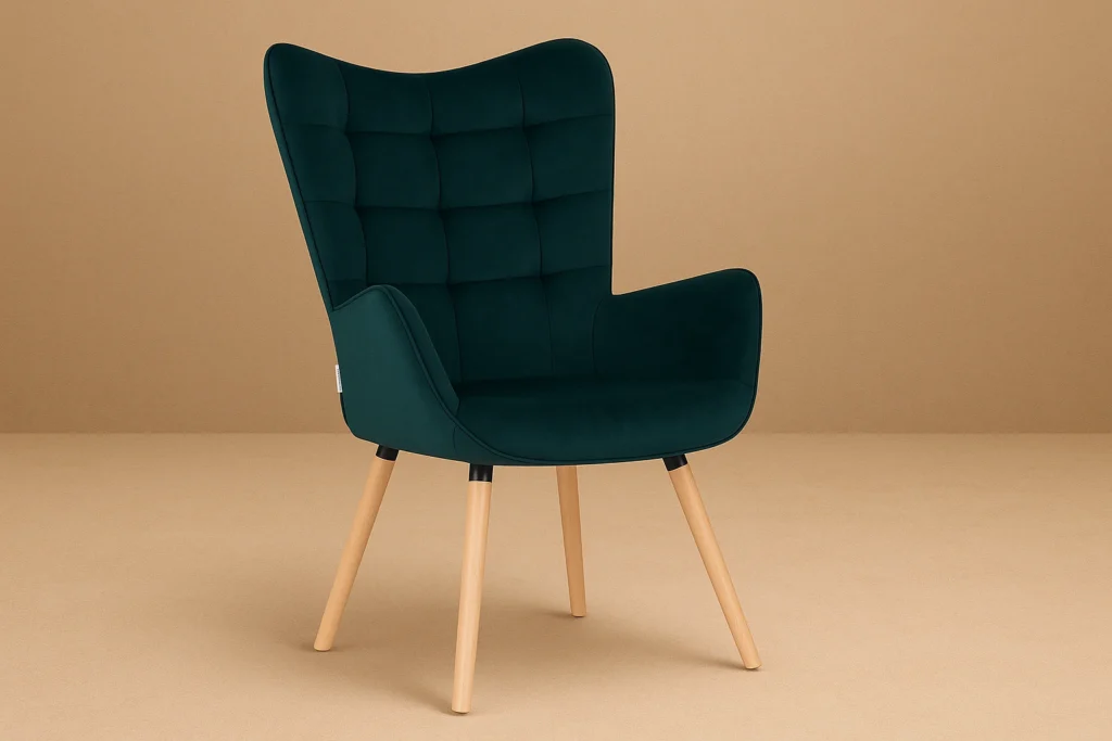Η πολυθρόνα Annarella είναι μια εξαιρετικά κομψή και άνετη επιλογή, κατασκευασμένη με βελούδινο ύφασμα σε σκούρο πράσινο απόχρωση, προσφέροντας μια εντυπωσιακή εμφάνιση και εξαιρετική άνεση στον χώρο σας.