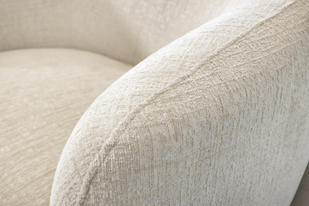 Η πολυθρόνα Mileto έχει έναν μίνιμαλ αλλά εκλεπτυσμένο σχεδιασμό, με απαλά καμπυλωτές γραμμές που προσφέρουν αίσθηση ζεστασιάς και άνεσης. Το ύφασμα σε απαλό λευκό χρώμα αναδεικνύει τη μοντέρνα αισθητική της και ταιριάζει εύκολα σε κάθε χώρο. Η ενιαία φόρμα της πλάτης με τα μπράτσα δημιουργεί μια αίσθηση, ιδανική για στιγμές χαλάρωσης. Η Mileto είναι μια κομψή και διακριτική προσθήκη για καθιστικά, υπνοδωμάτια ή γωνιές ανάγνωσης.