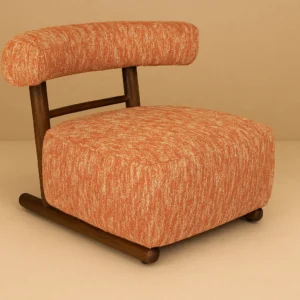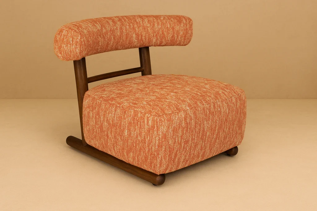 Η πολυθρόνα σε καμπυλωτό σχήμα και πορτοκαλί χρώμα αποτελεί μια ζωηρή και εντυπωσιακή προσθήκη